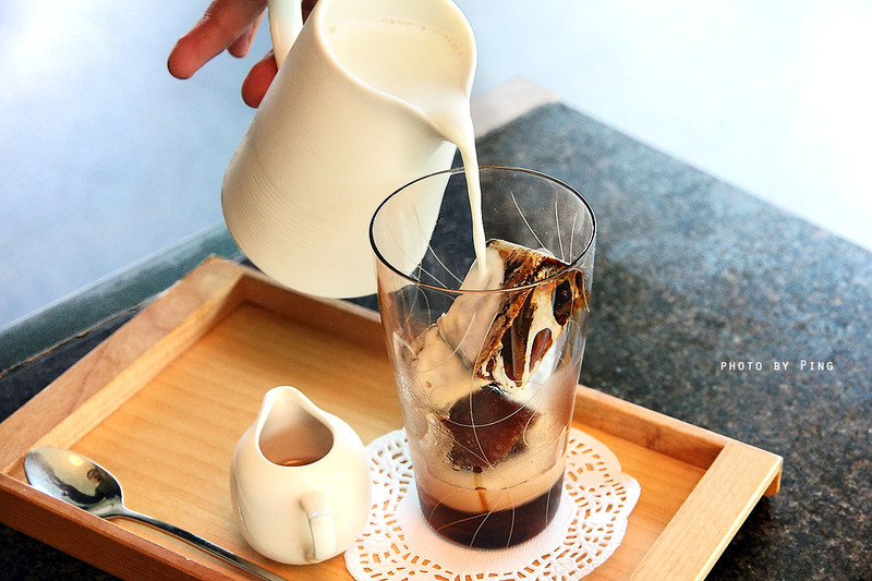 先是將鮮奶倒入咖啡冰磚中約8分滿,然後攪拌後靜置約3分鐘左右,即可享用,